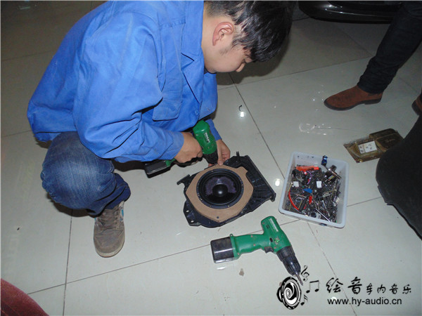 5.我们的师傅正在安装喇叭,安装好,直接放在座位下面~~