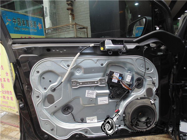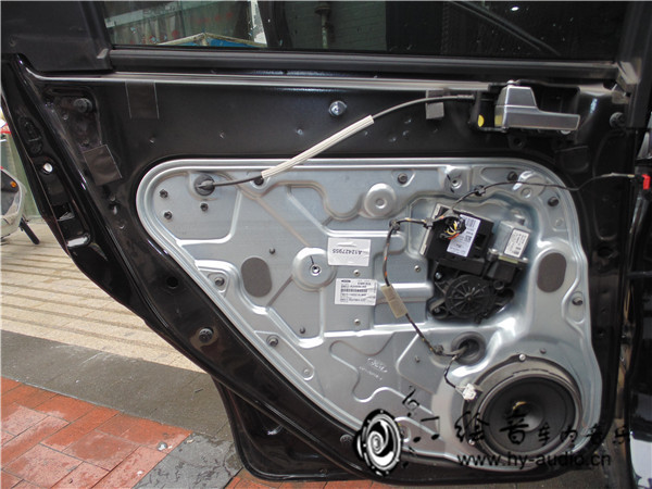 1,前门板拆开之后可见内部结构,原车门板没有一点隔音材料!