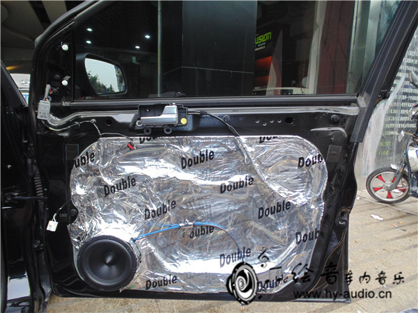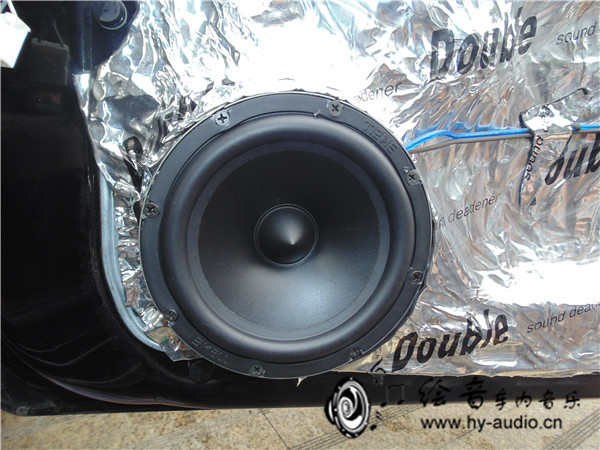 3.门板双层隔音做好之后,喇叭已经装上车了!