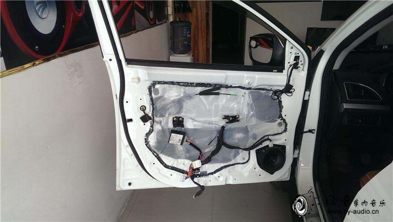 3、前门板的门板双层隔音已经处理完毕了,效果看在眼里!
