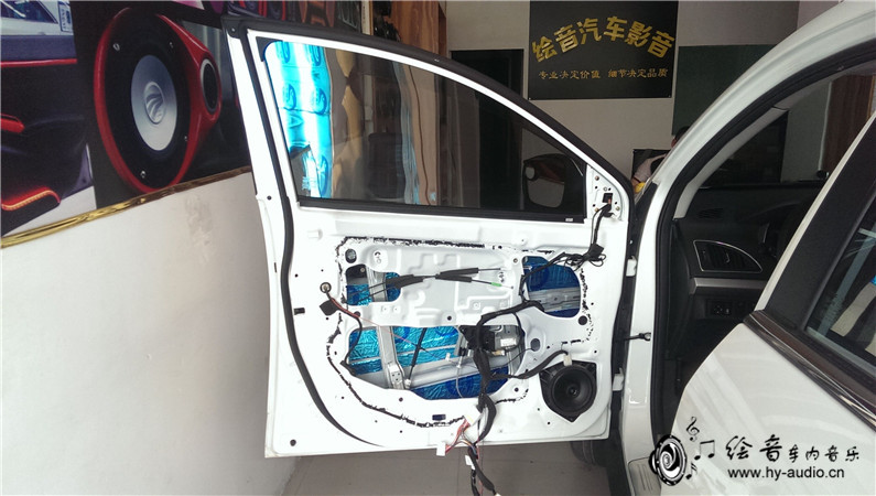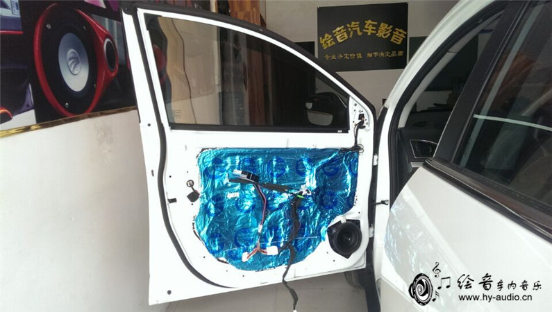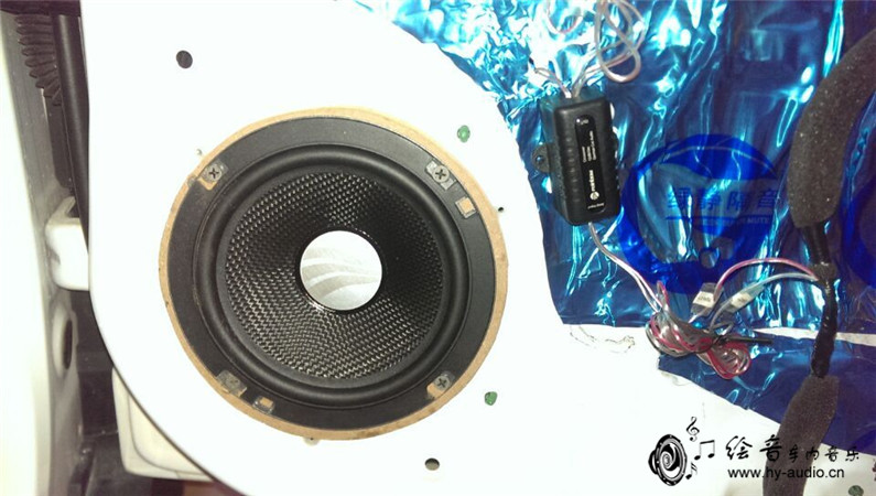 7、车主在做全车隔音的时候了,对我们说原车音响不行,于是我门为他推荐了德国彩虹EL系类的喇叭,超高的性价比!声音各个方面表现的也非常不错,喇叭也全部采用无损安装!