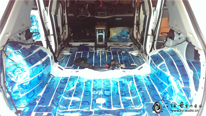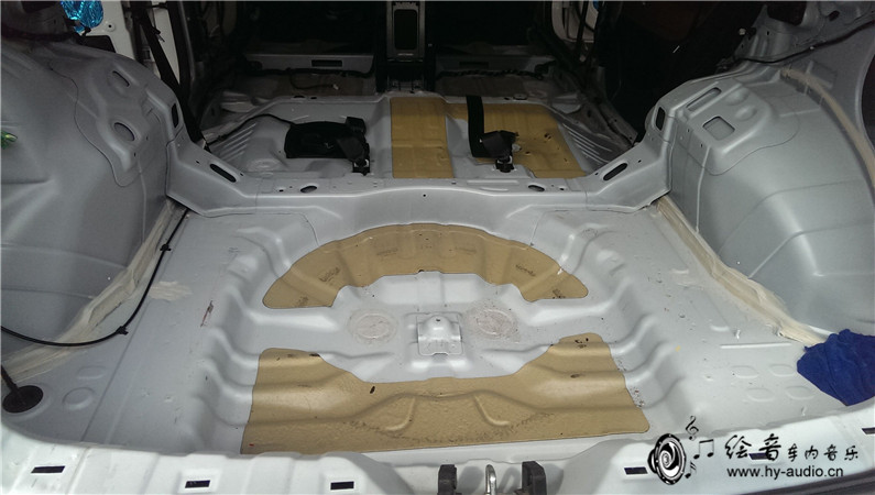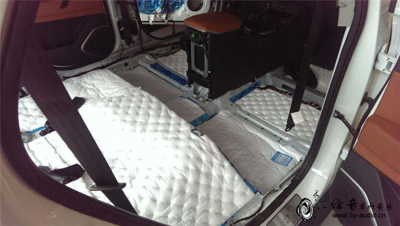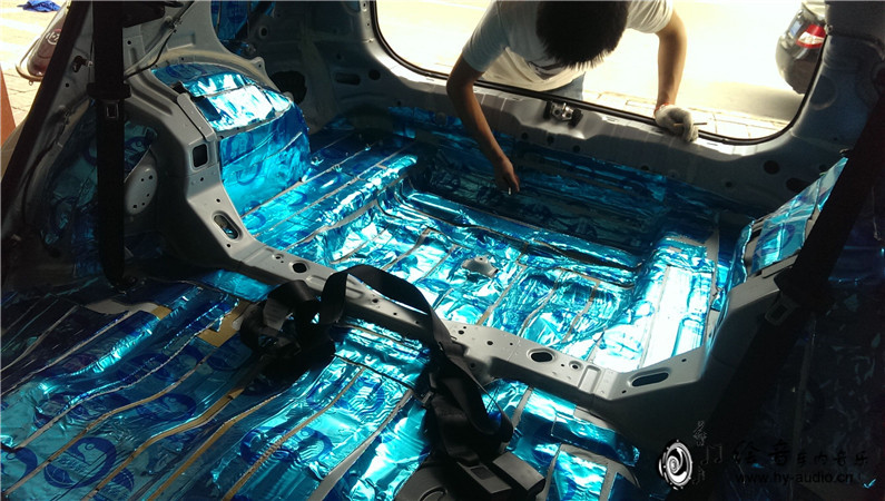 5、底盘第一层止震板已经贴好,看一下是不是变化很大,当然效果和原车变化也很大!