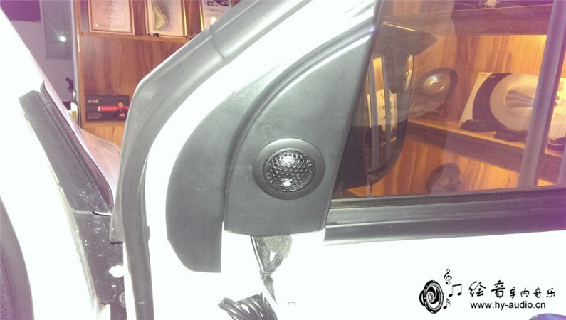 8、因为原车高音位置不理想,我门像车主建议开孔安装,效果很更好一些!