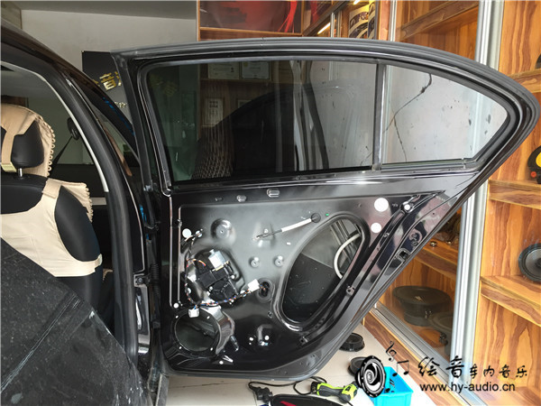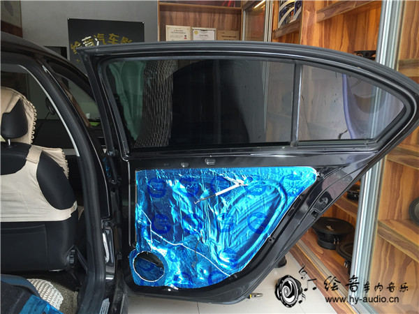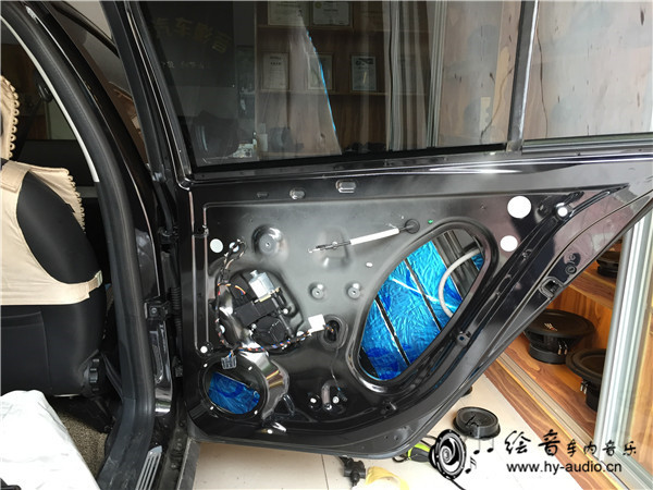 3、 门板双层隔音施工完毕,喇叭已经装上车了