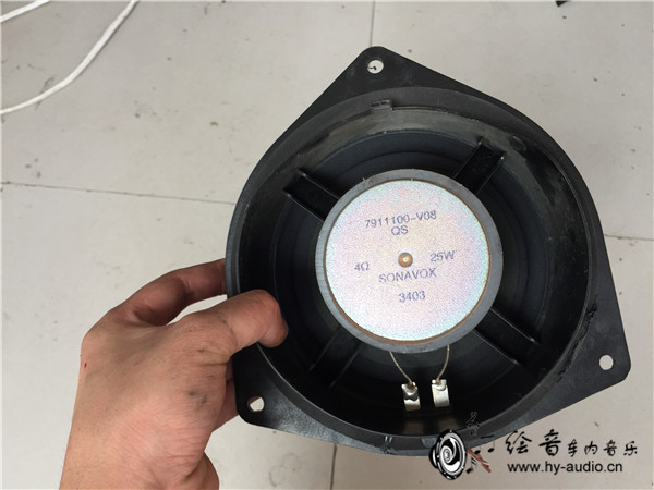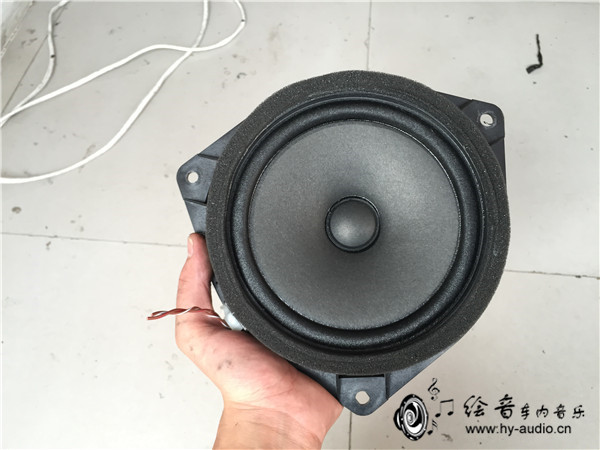 2、门板拆开之后我们把原车喇叭拿给车主看,车主简直不忍心继续看下去~