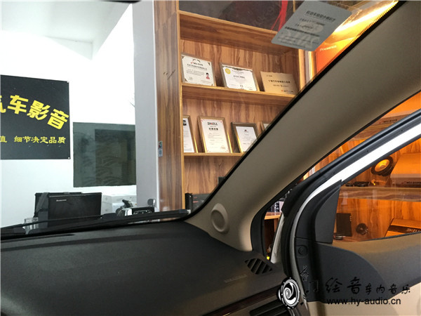 4、中低音喇叭安装完毕之后,紧接着就是安装高音喇叭,高音喇叭还是安装在原装位上面,因为车主不想倒模,只想无损安装