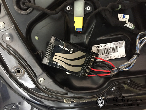 3、很多车主朋友,可能在没有了解过音响改装的时候还不知道这个小盒子是什么东西吧,这个是这一套喇叭的分频器,有了这个东西声音的层次感会更好!