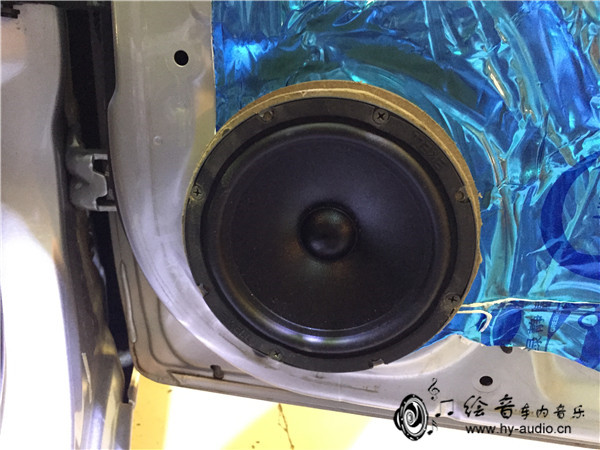 3、门板双层隔音施工完毕,喇叭安装好之后的效果图,完全的无损安装