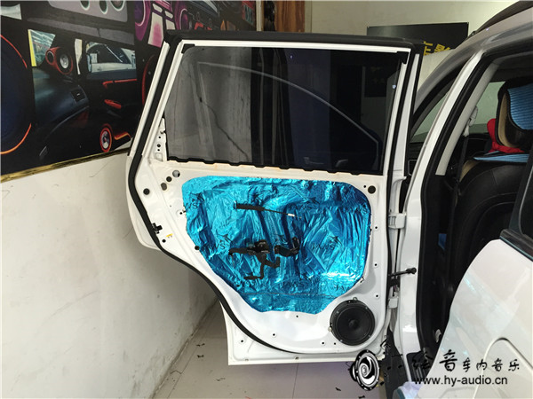 4、门板隔音施工完成,紧接着就开始安装喇叭~