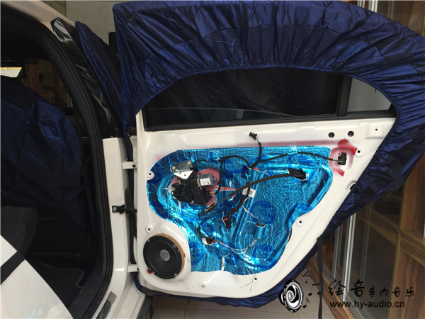 4、安装喇叭和隔音工程同步完成,细节狠重要!前声场安装完成