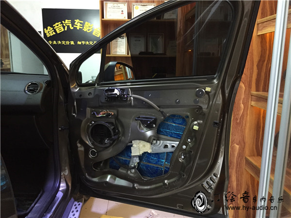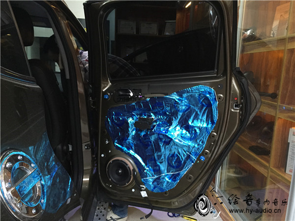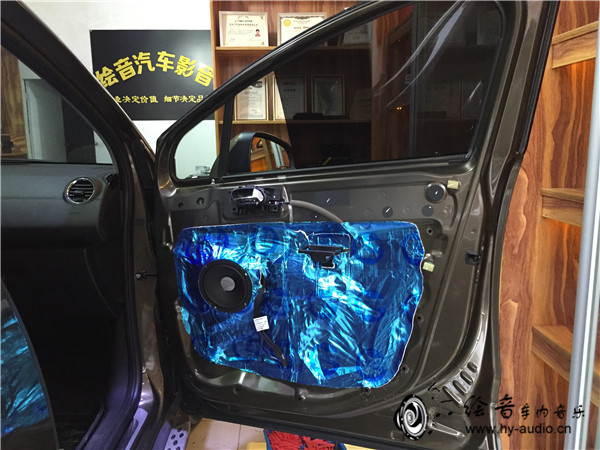 3、门板隔音做好之后就直接开始安装喇叭了,喇叭安装好之后的效果图,完全的无损改装方案