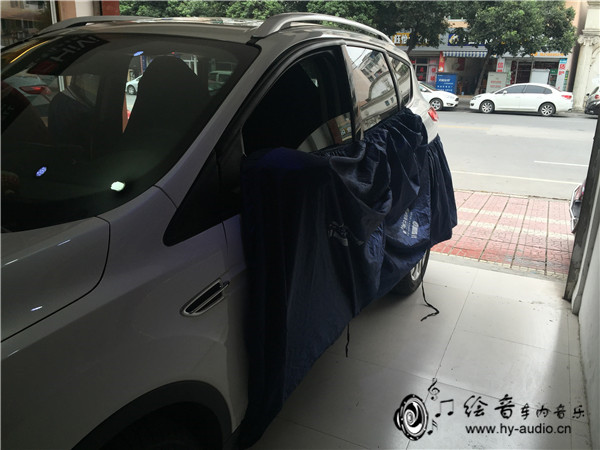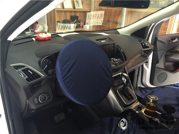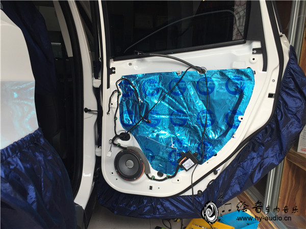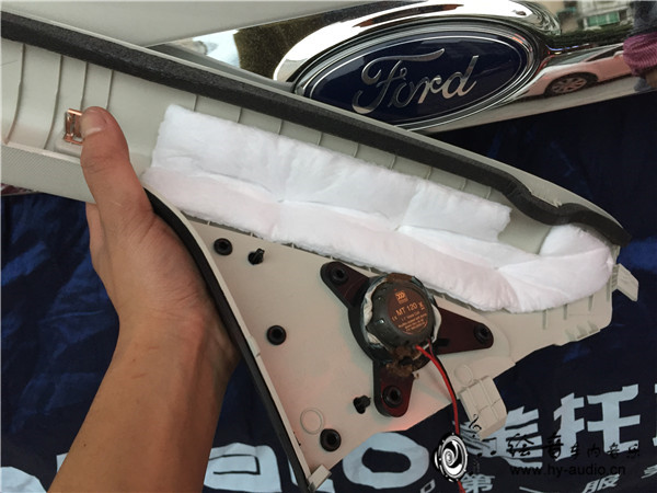 5、门板隔音施工完毕之后我们再来看一看音响改装的施工过程吧,福特翼虎SONY音响系统,原车CD其实还是不错的,就是原车喇叭有点让人心酸