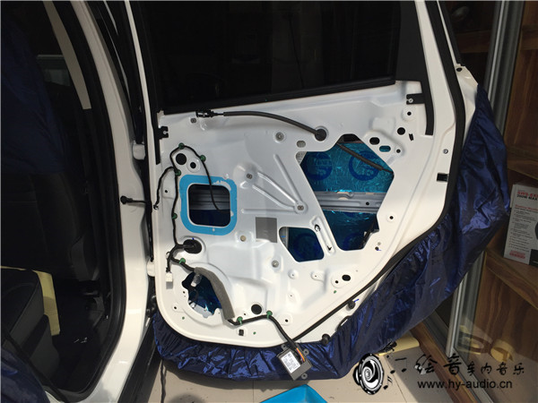 2、前后门板拆开之后可见门板内部结构,原车门板结构很简单,没有任何隔音材料,门板双层隔音马上开始