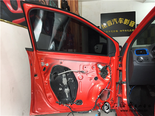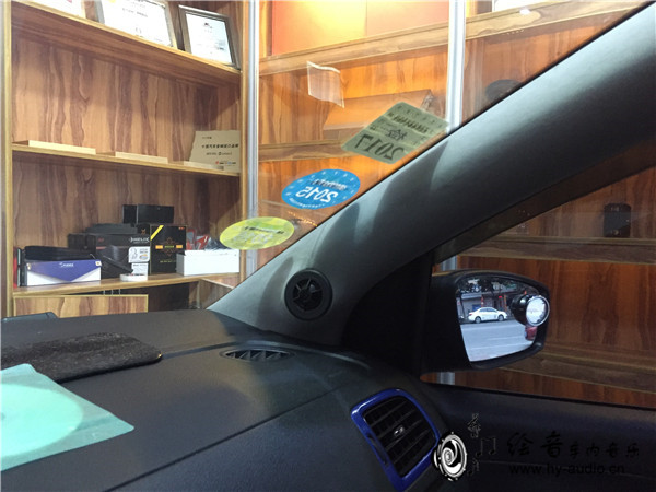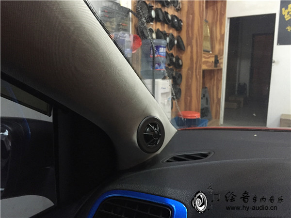 4、如果是大众POLO车主都知道,原车高音喇叭在A柱上面,这次我们向车主建议A柱高音倒模,车主很轻松的就接受了,因为声音更好为什么不呢?
