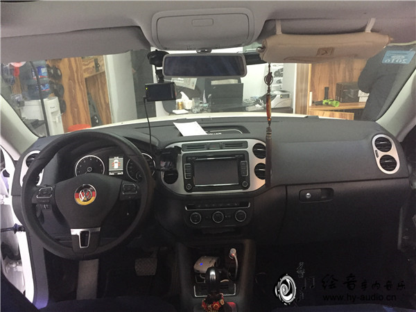 1、音响改装马上开始,大众途观简单、大气的中控台