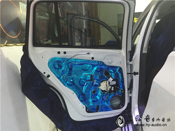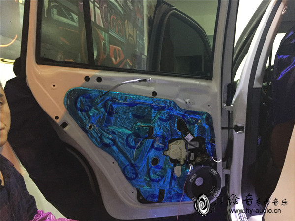 4、门板隔音施工完毕之后紧接着就是安装中低音喇叭。