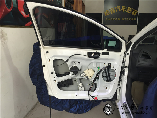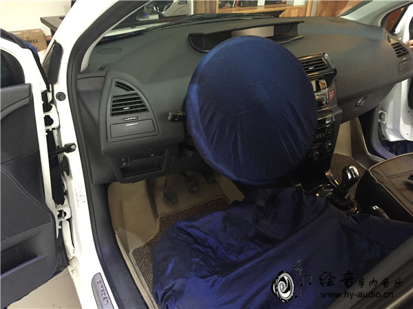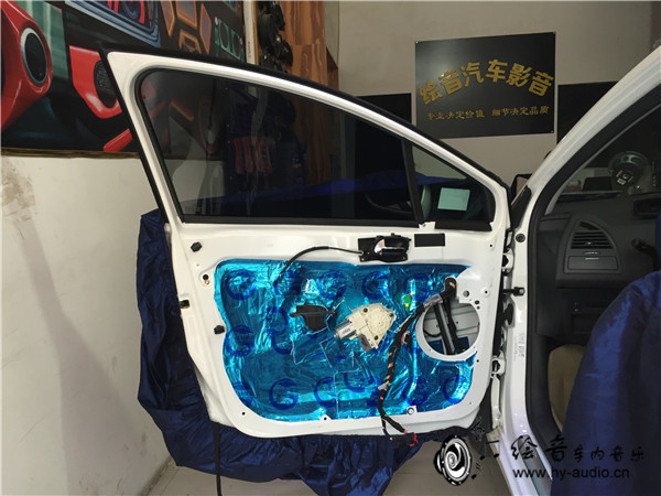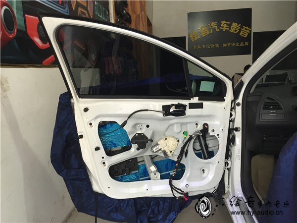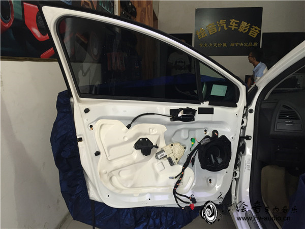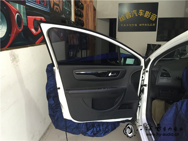 1、音响改装施工的第一步,现将车身进行保护,避免刮花门板