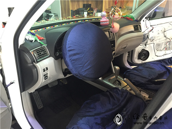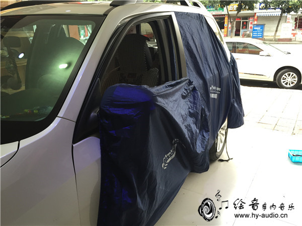 将车内饰板进行保护,避免刮花内饰板,一切准备妥当之后开始施工这辆斯巴鲁森林人了