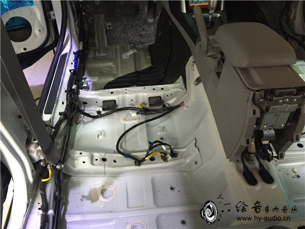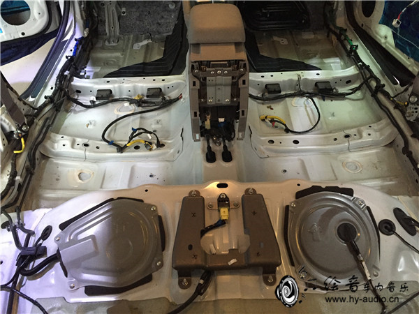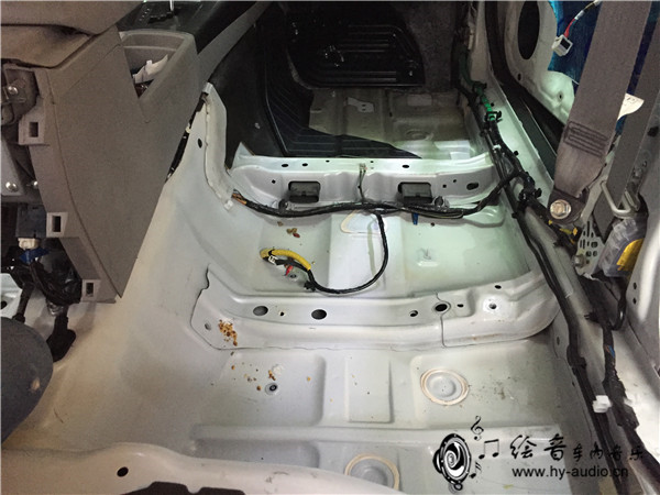 3、先来看一看原车底盘的样子,现在还没有施工隔音哦