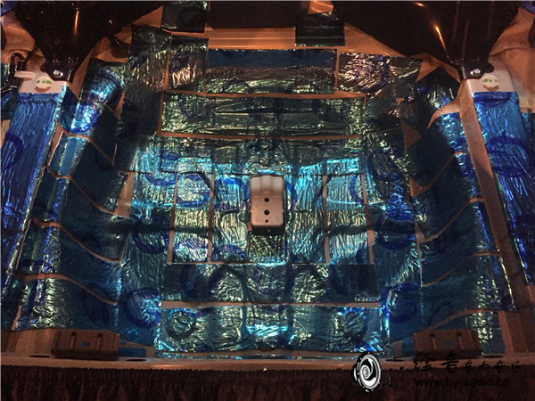 4、底盘首先进行的的是第一层止震板,稍后进行第二层吸音棉。