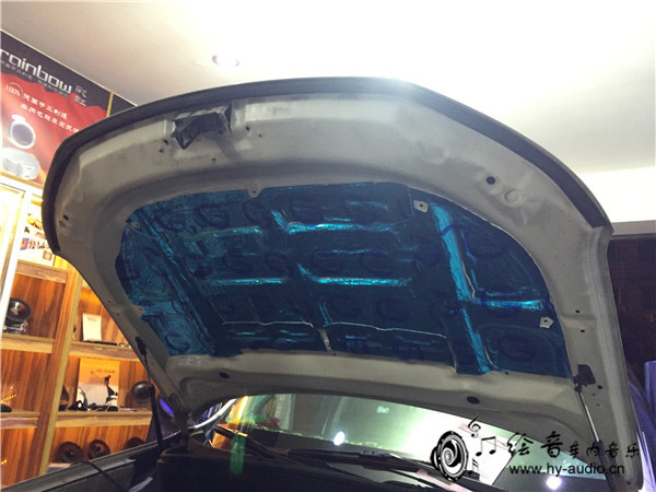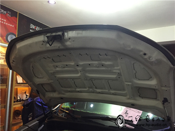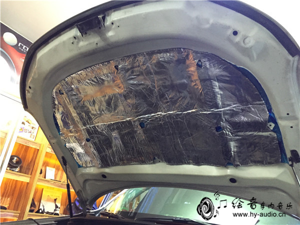 8、引擎盖隔音施工,大大降低钣金震动,减少发动机噪音,防止漆面遭受高温炙烤!