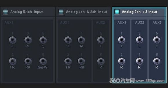 1. 输入输出选择:此车前门做主动2分音系统,在阿尔派H800的输入选择上4声道或2声道模式,4.2模式:对于前门两分频,后门同轴或套装喇叭,另加1个低音。